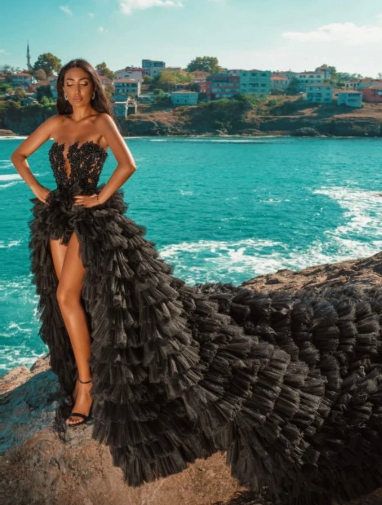 FancyENF Classy Seduction Black Maxi Dress with Pearl detail